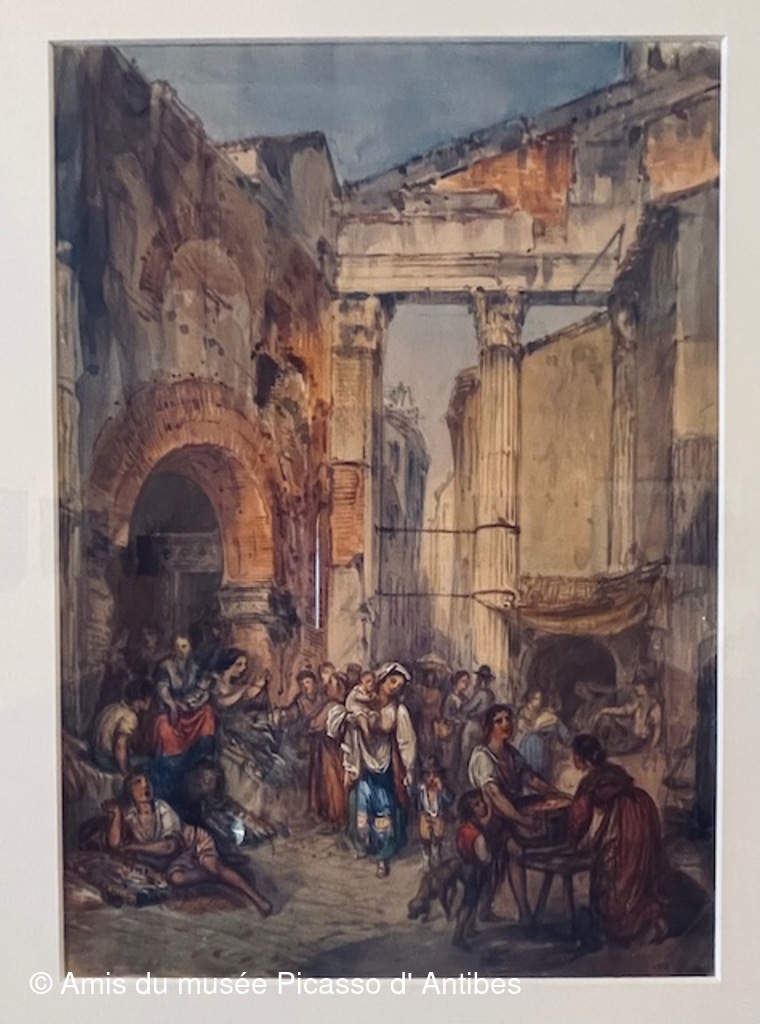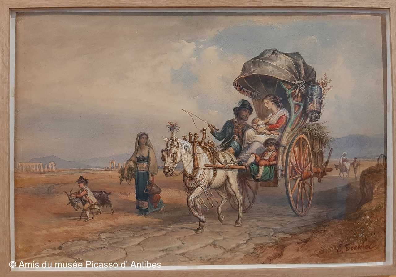 Paysages aquarellés de Nice, Rome et ses environs, Naples et autres objets collectionnés par ces familles.